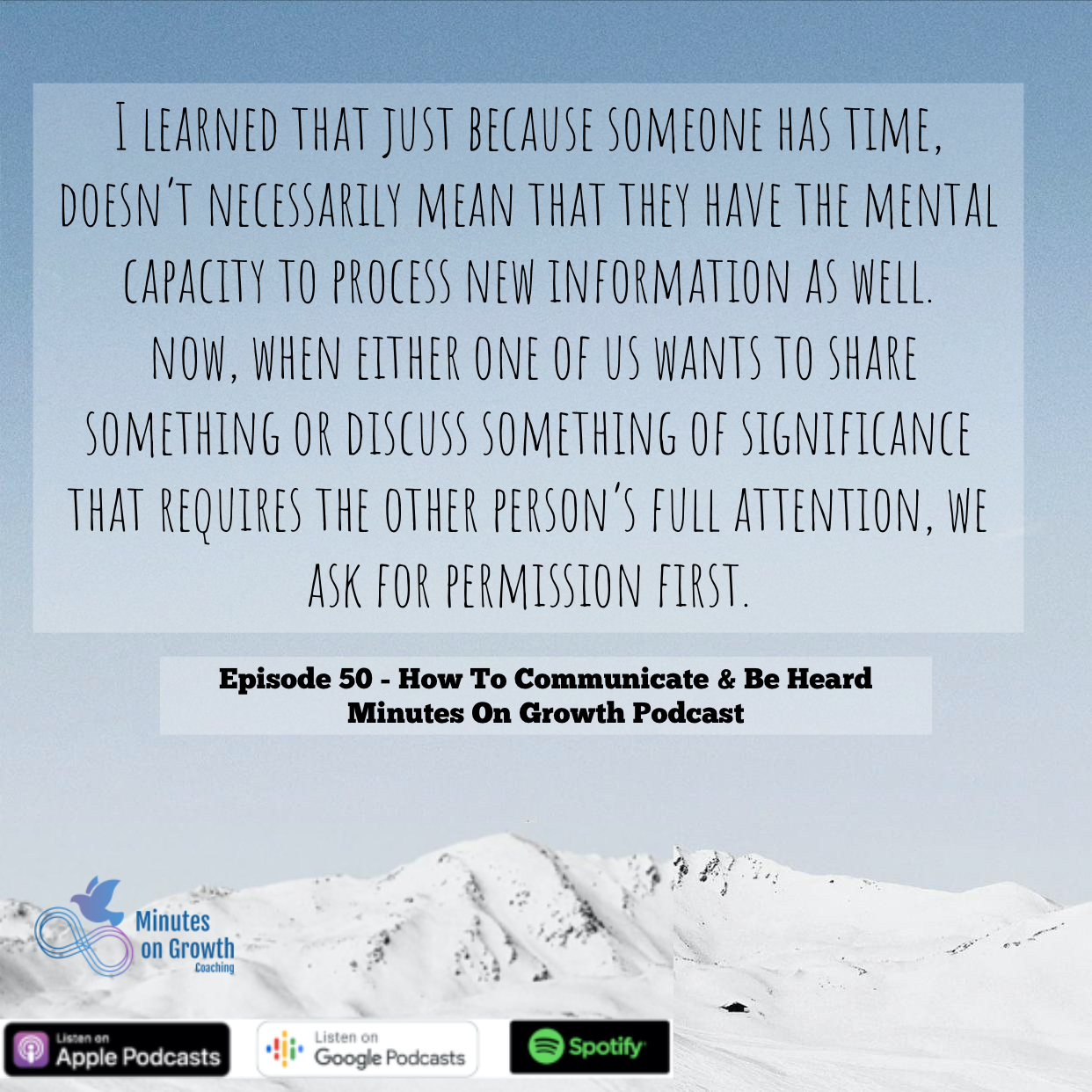 It’s Tannaz Hosseinpour and welcome to another short solo episode of Minutes on Growth. A couple of days ago, I did a live relationship Q/A on Instagram where I shared a communication tip that many found useful so I thought that I would share it here with you as well.