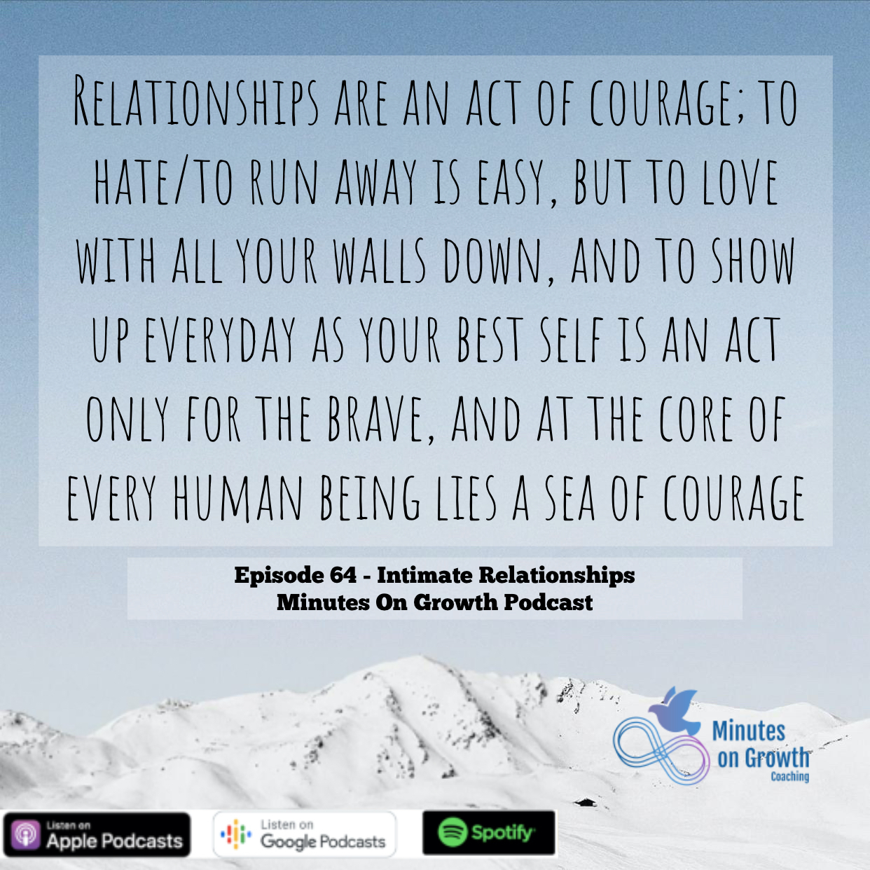 Hi Soul-Friends, It’s Tannaz Hosseinpour and welcome to another short solo episode of Minutes on Growth. Ever since the successful launch of the Become Your Most Loved Self program, the first integrative coaching and therapy program in the GCC where we dive deep into enhancing your relationship with yourself, others and your purpose, I’ve been thinking more and more about the core definition of an intimate relationship. I’ve come up with a few insights that I would love to share with you. I believe that when we’re talking about relationships, we are talking about