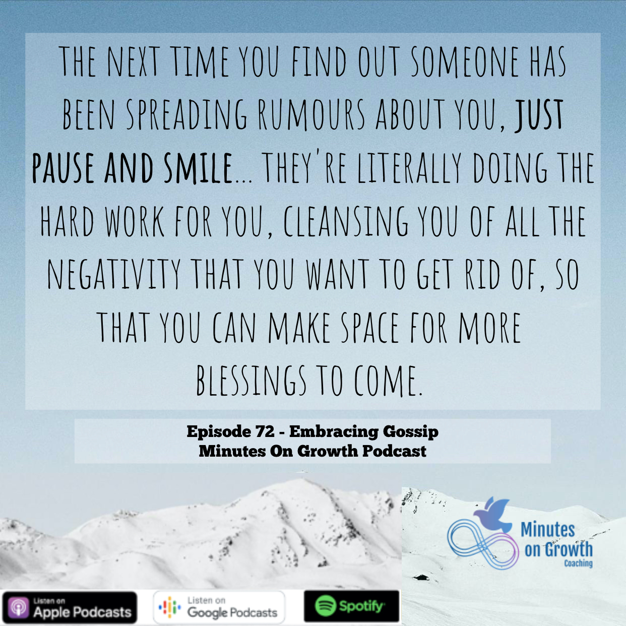 Hi Soul-Friends, it’s Tannaz Hosseinpour and welcome to another short solo episode of Minutes on Growth. This week, I was to briefly talk about a powerful spiritual mindset shift around gossip. You might be reading the podcast title, Embracing Gossip, and be thinking how is anyone ever meant to embrace gossip? Well I’d like to explain…