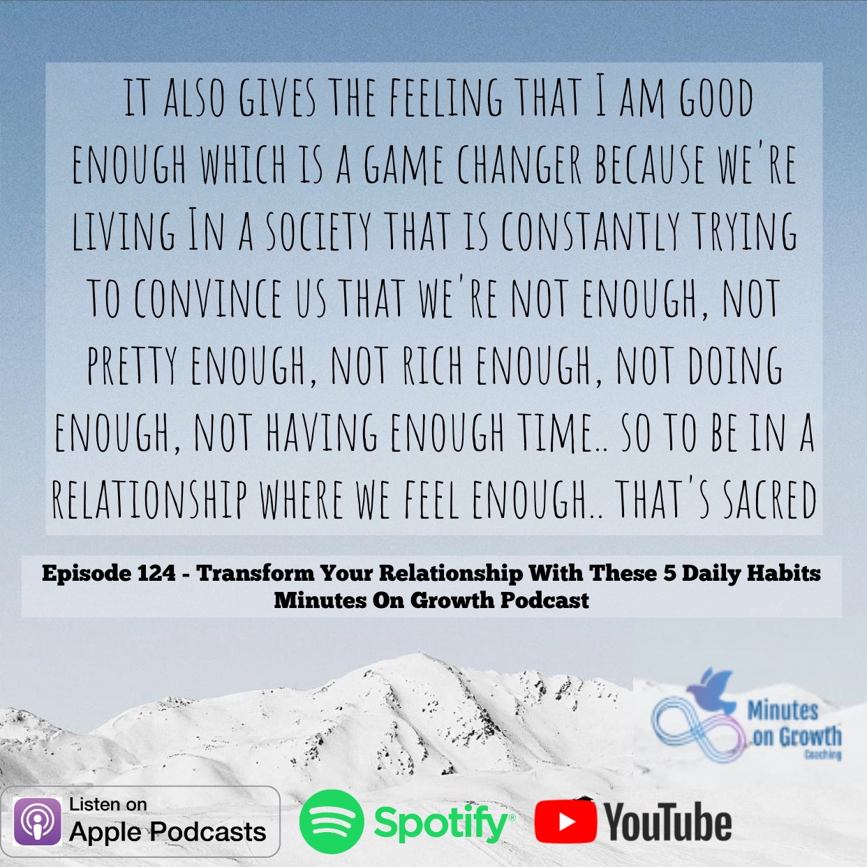 It’s Tannaz Hosseinpour and welcome back to another short solo episode of the minutes on growth podcast. I just realized that its been a month since my last episode. time truly flies! I will definitely set an intention to release more episodes this summer but honestly a lot has happened this past month with Ash and I getting engaged which I’ll definitely talk more about in upcoming episodes, but today I wanted to briefly share 5 habits that we’ve been intentionally engaging in everyday these past couple of months that has truly elevated our relational experience, and they’re honestly so simple and basic that they don’t feel significant enough to cause such a grand transformation but I really want you all to try it out and to experience firsthand how powerful they can be,