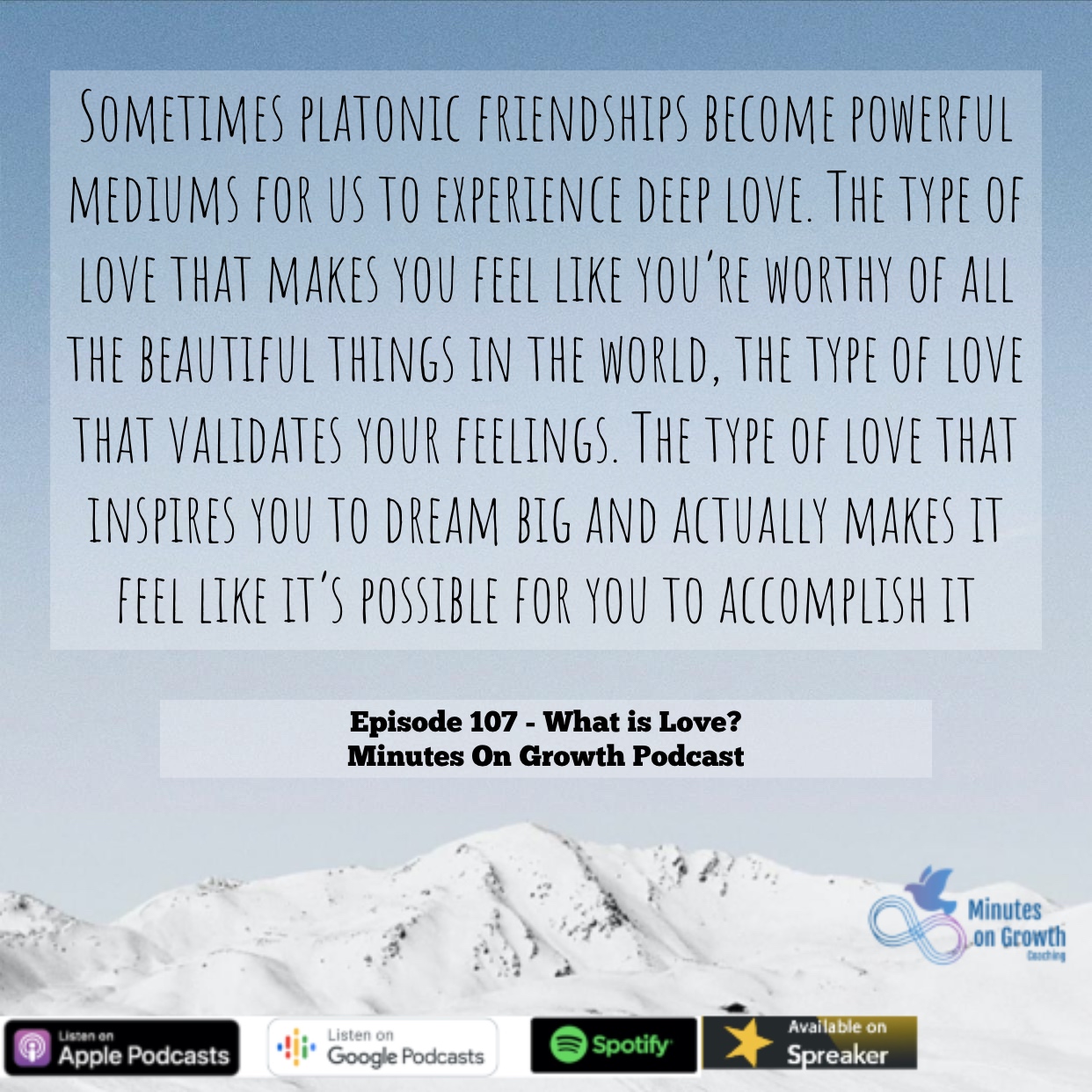 Please click here to listen to Episode 107 of the Minutes on Growth Podcast Hi Soul Friends It’s Tannaz Hosseinpour and welcome to another short solo episode of Minutes on Growth Next week, our manifesting love 28 day online program starts and I couldn’t be more excited because this is a program that pretty muchContinue reading “Episode 107 – What is Love?”